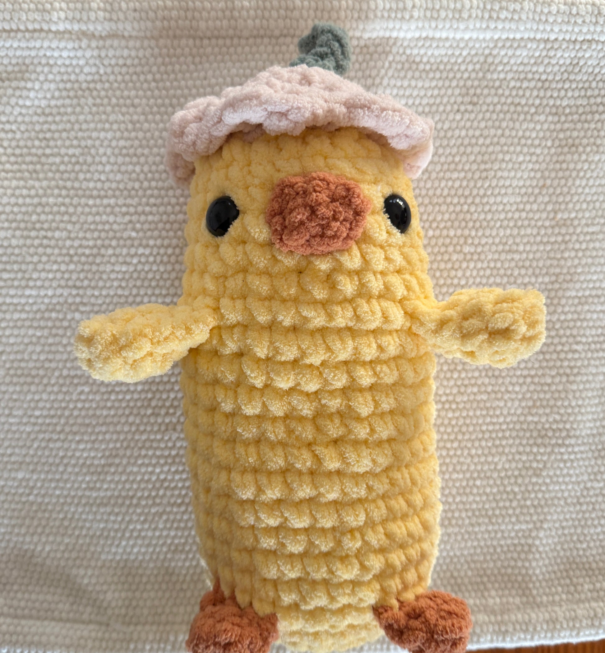 Hand-made, one of a kind crochet duck plushie. Made with 100% polyester yarn.