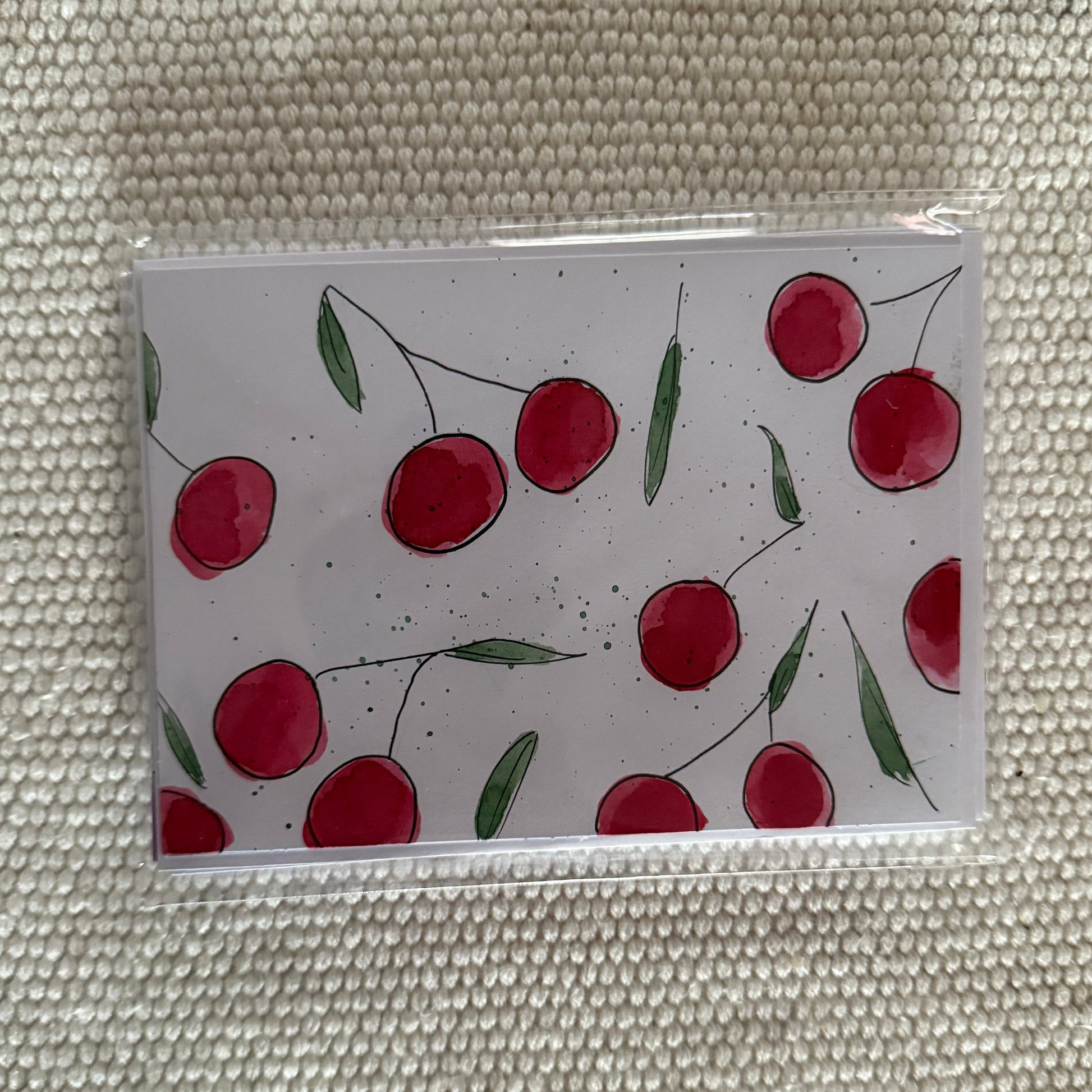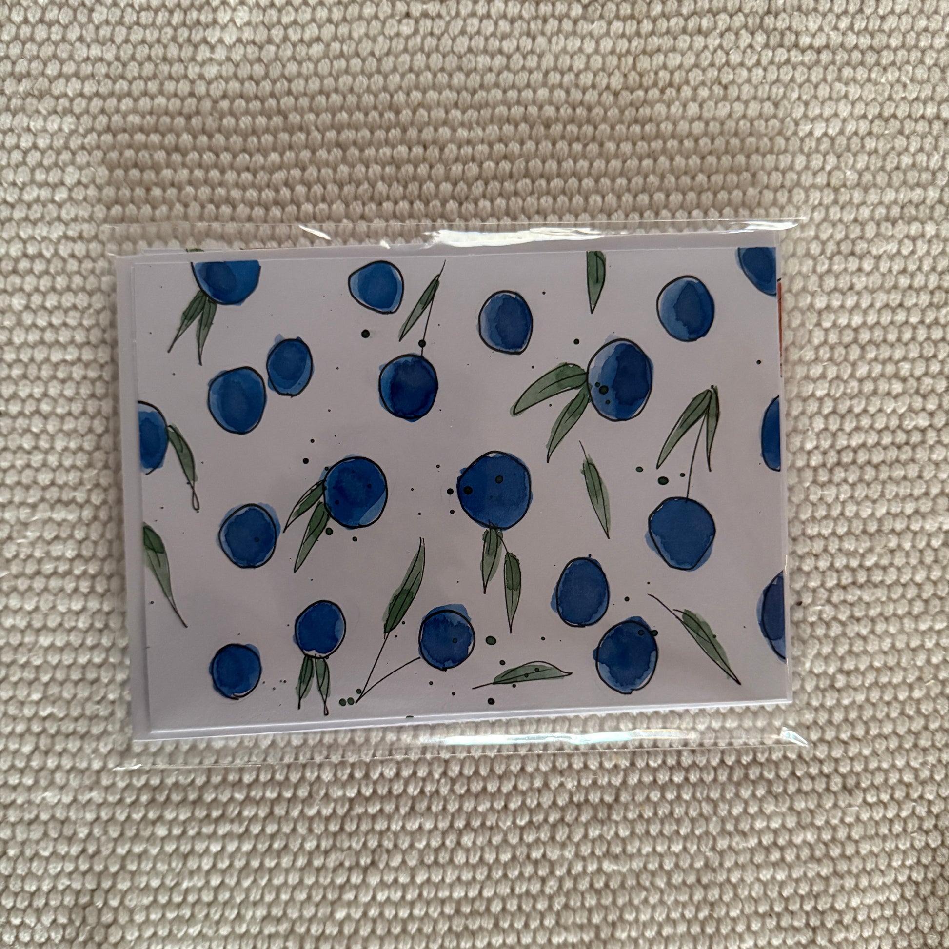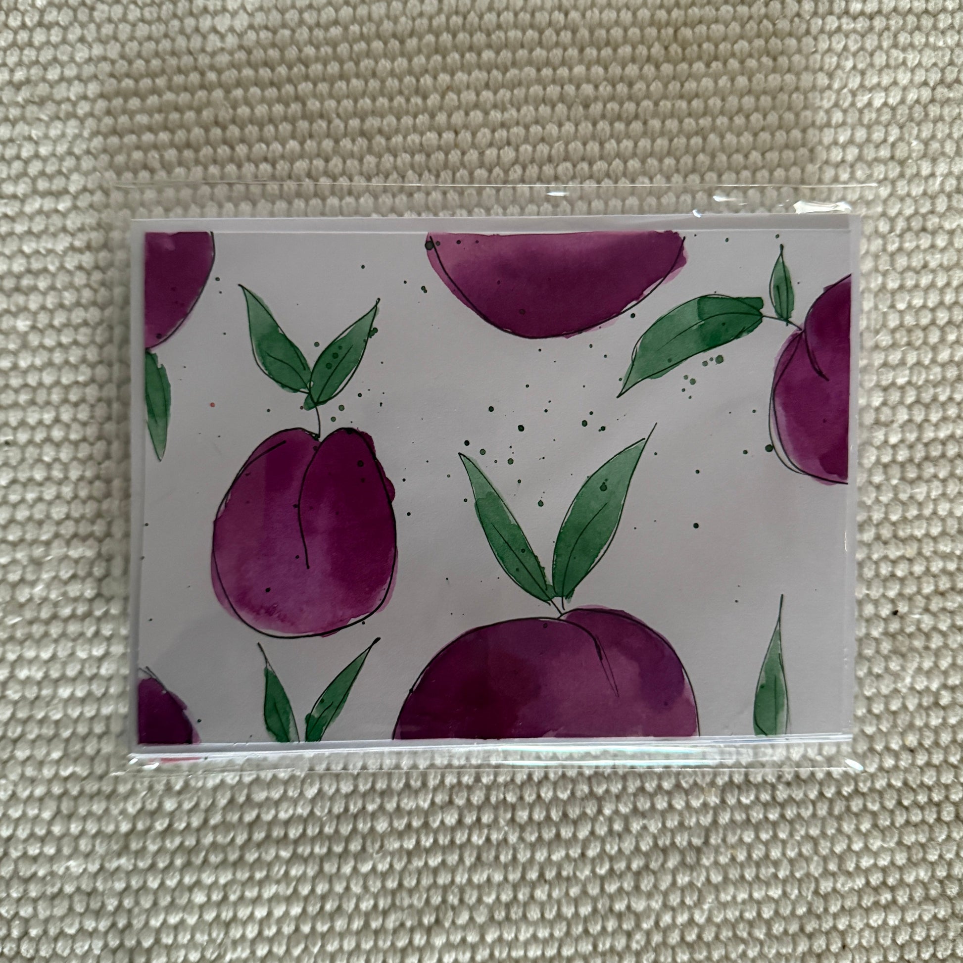 Hand-painted, one of a kind fruit greeting cards with envelopes. 1 of each design included: cherries, blueberries, oranges, and plums. 4 total.