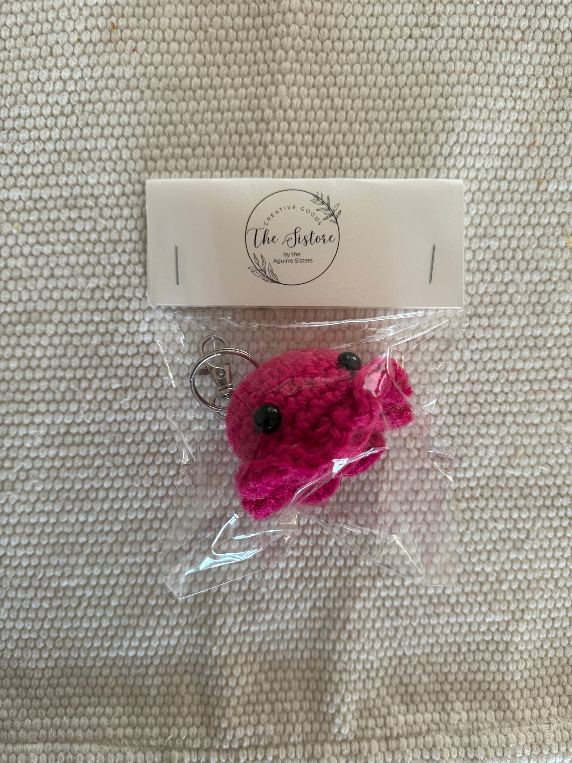 Hand-made, one of a kind keychains of varied colors. Octopus is about 2 inches long with a 1 inch key ring.